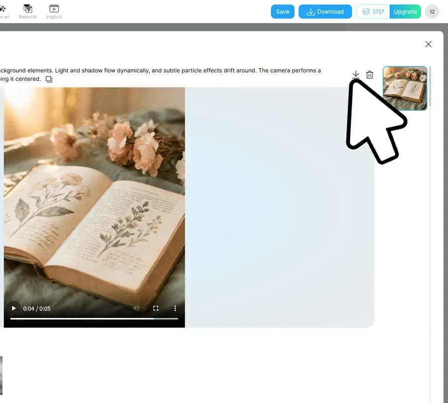 Get Started FreeMockuplabs integrates mockup creation + AI image-to-video generation + export capability, you never need to switch tools. From uploading the book cover or spread to downloading the final animated video — the entire process happens in one platform, which streamlines your workflow and reduces friction.