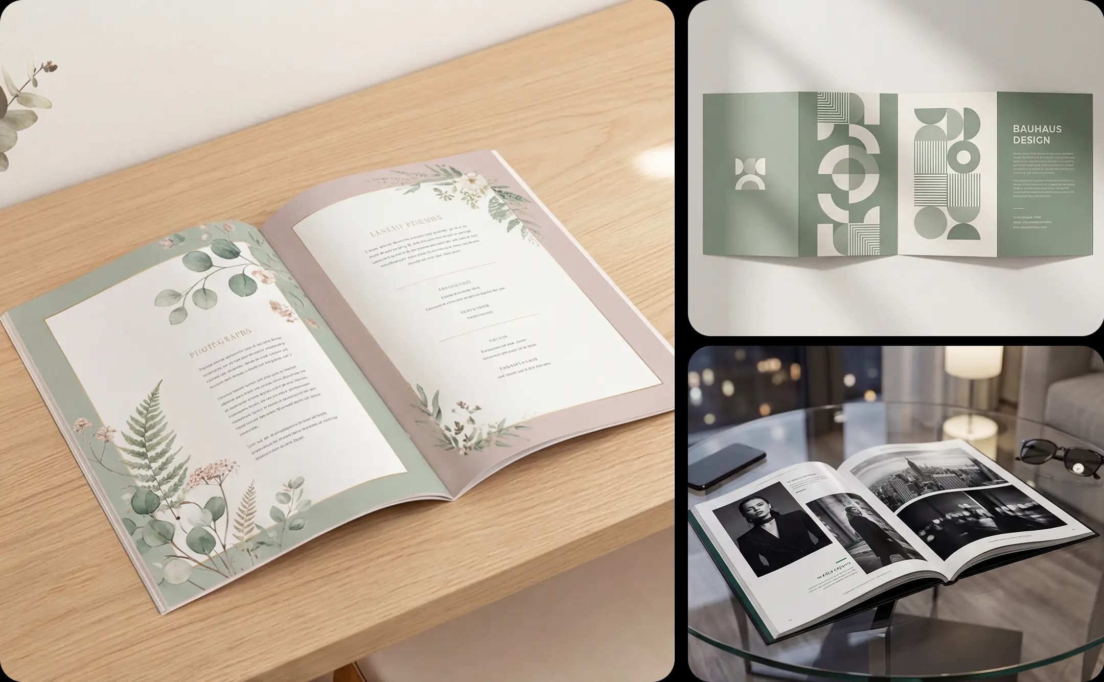 Whether you're working on a brochure, landscape booklet, or horizontal booklet, you can turn flat booklet designs into realistic mockups and generate professional visuals in minutes. Perfect for marketing materials, client previews, and print-ready presentations.