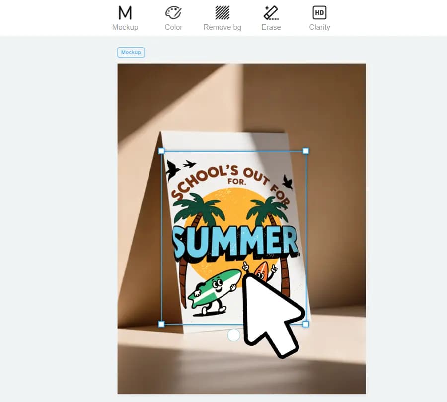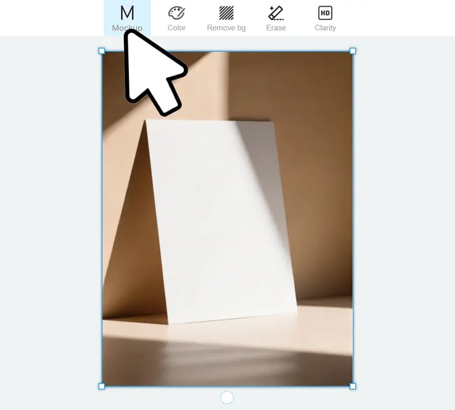Click "Mockup" to transform your 2D image into a realistic booklet mockup with accurate perspective and depth.