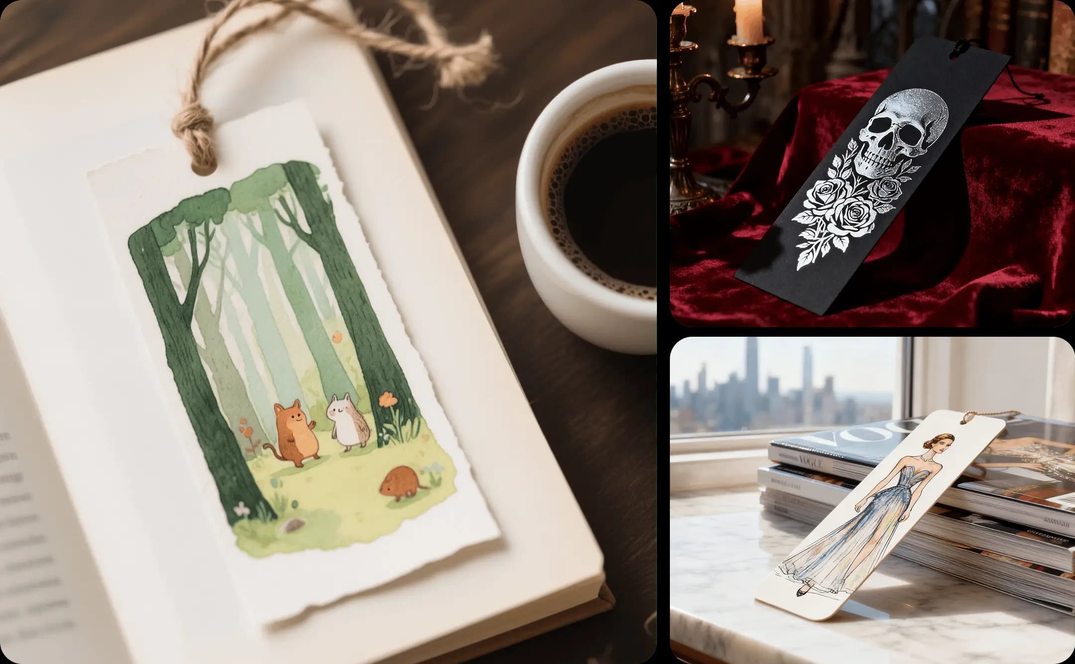 Transform bookmark designs into realistic mockups. Upload your bookmark image, change colors, and add text or graphics. Get high-quality preview visuals without needing Photoshop.