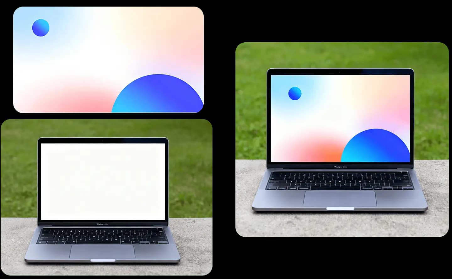 Upload screenshot or interface and wrap it on a MacBook or MacBook Pro device.![]()