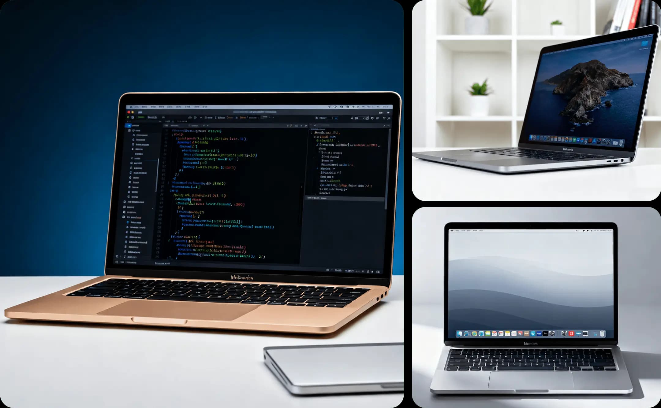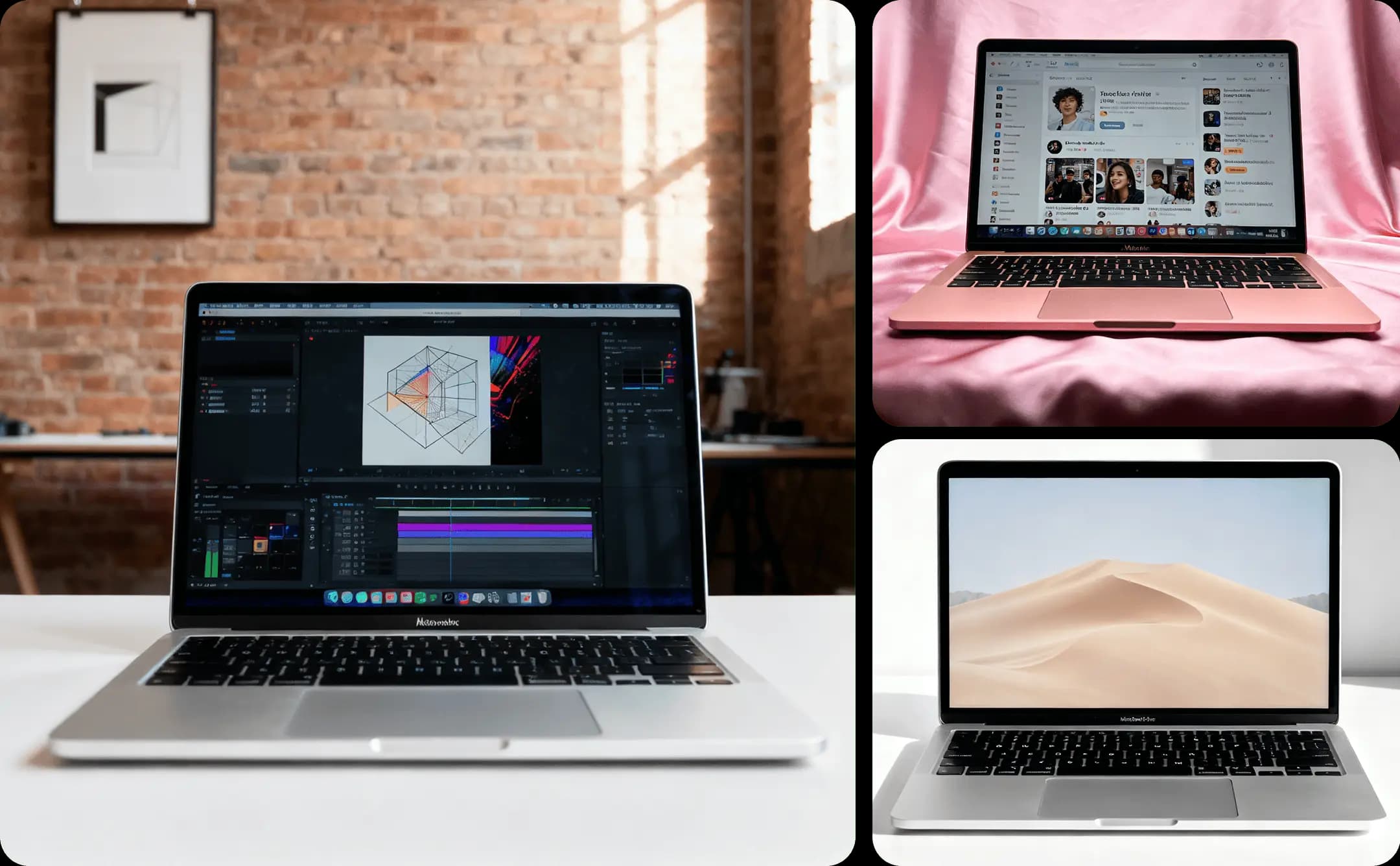 Transform your UI, web interface or app design into a realistic MacBook visual in minutes. Our AI-powered macbook mockup generator lets you create high-fidelity MacBook templates, and download professional assets.