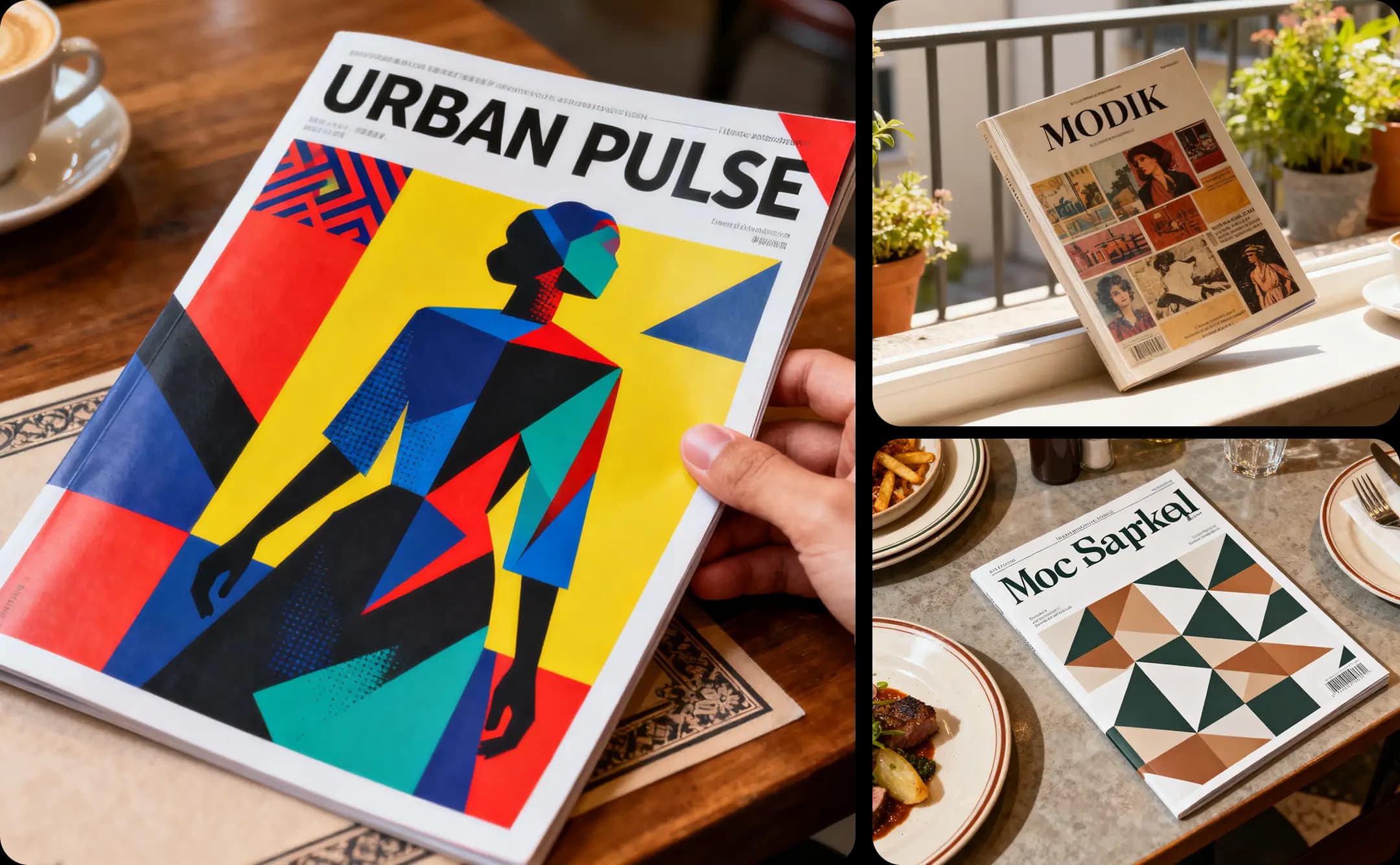 Create animated mockup previews or promo videos of your magazine using our AI video generator.A magazine mockup is a realistic digital preview of what your magazine cover or inside pages will look like once printed or published. It helps you visualise layout, test text and image placement, and present the concept to stakeholders before committing to production.