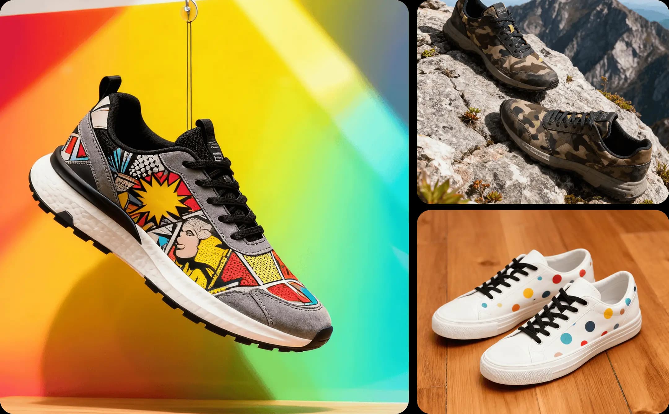 Generate mockups for custom sneakers, running shoes, personalized tennis shoes, and more.![]()