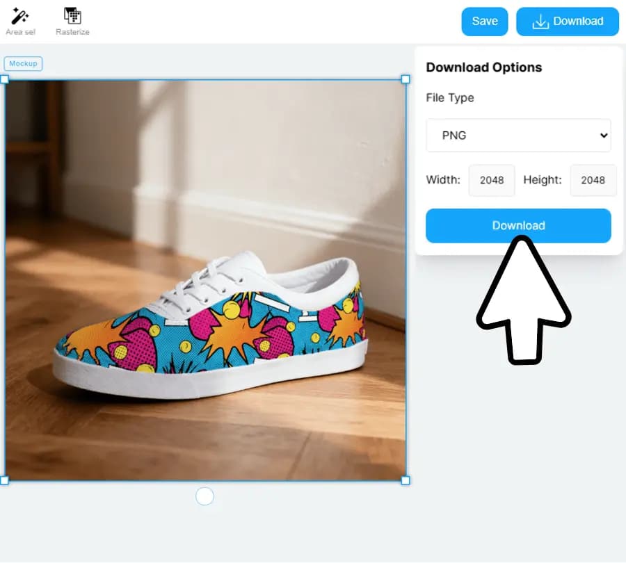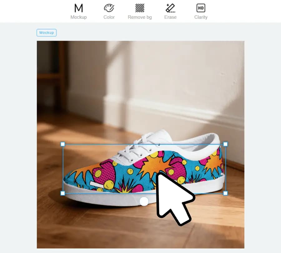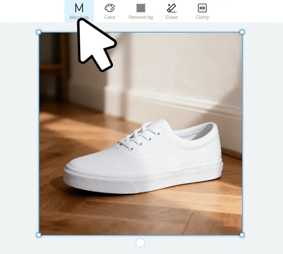 Select your shoes image, then click "Mockup" to turn it into an editable mockup, ready for customization.
