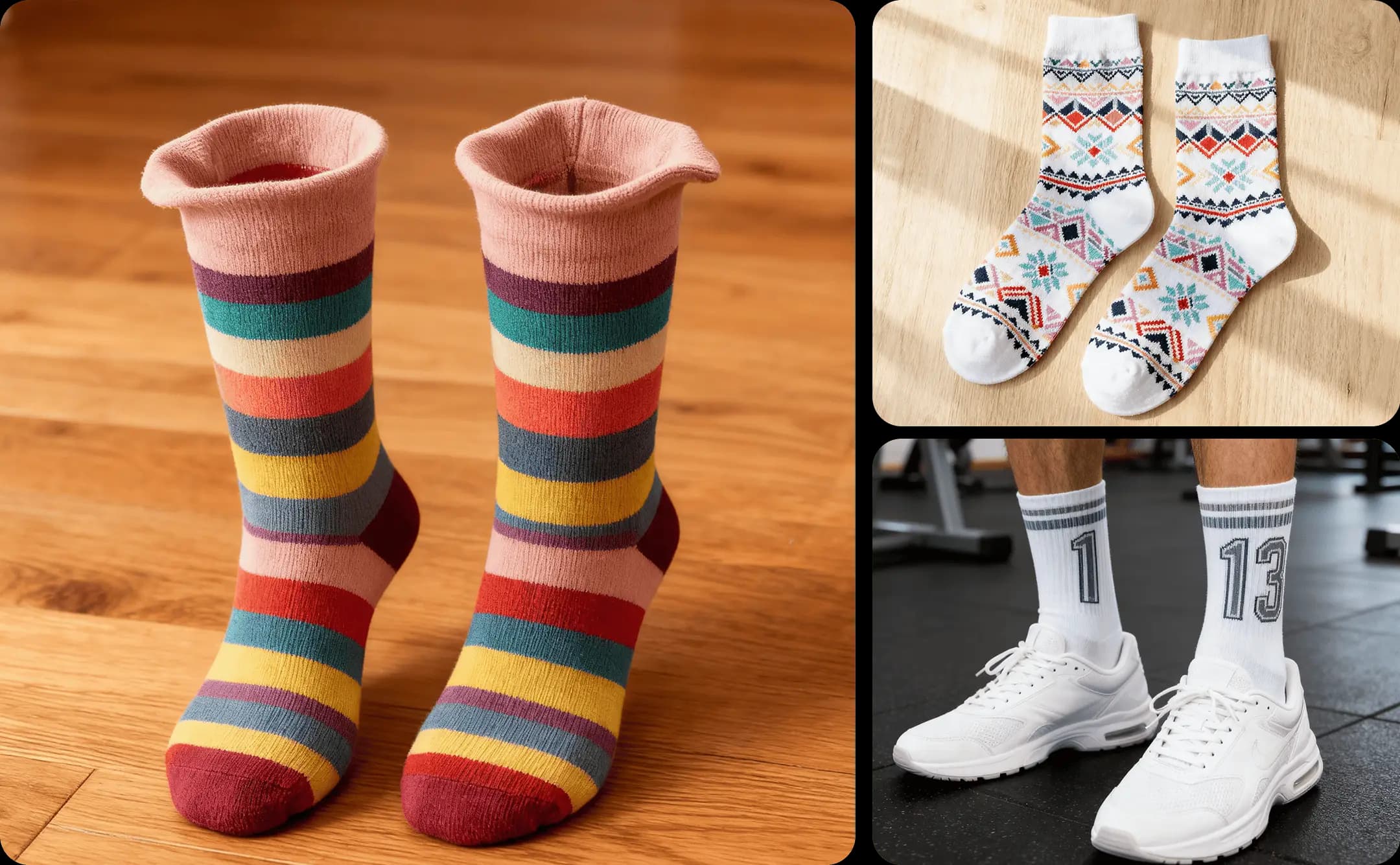 With Mockuplabs, you can create a wide range of designs for custom socks, including: