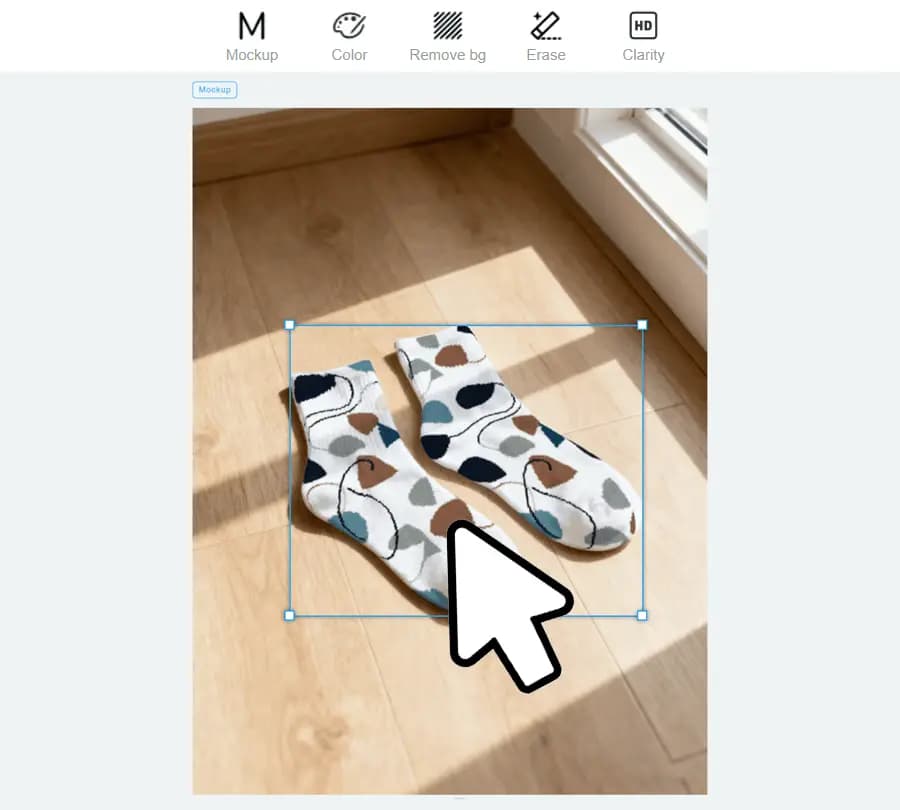 Select your sock image and transform it into a customizable mockup ready for adjustments.