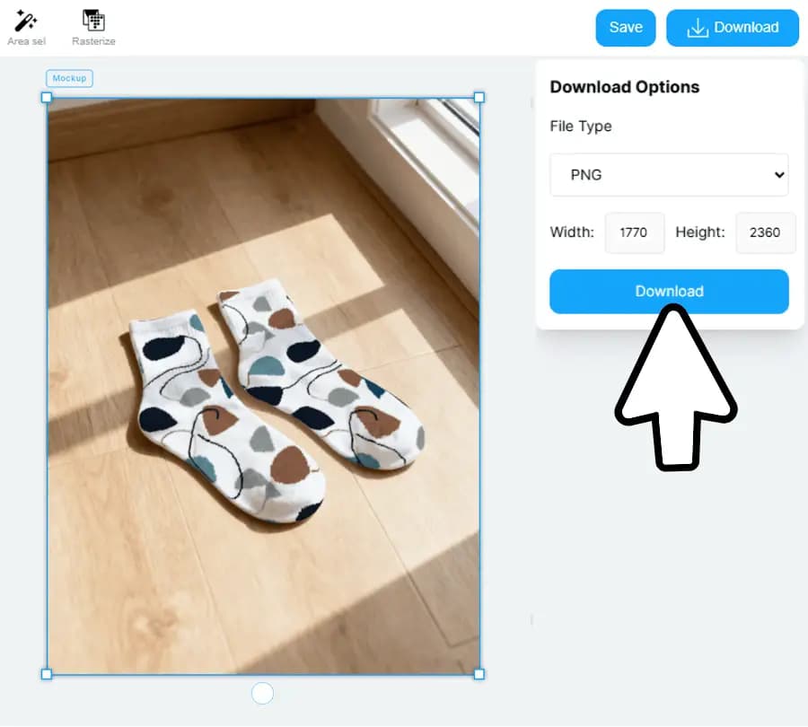 Once your sock mockup is ready, you can download it in high-resolution for use in: