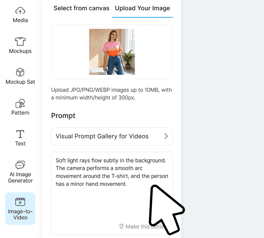 Create unique fabric textures, repeating prints, or branded backgrounds powered by AI.No. A T‑shirt video mockup generator lets you create motion videos from a flat design or mockup image — no 3D modeling, no animation software, no filming required. Upload your artwork, enter a prompt, and AI handles the rest.