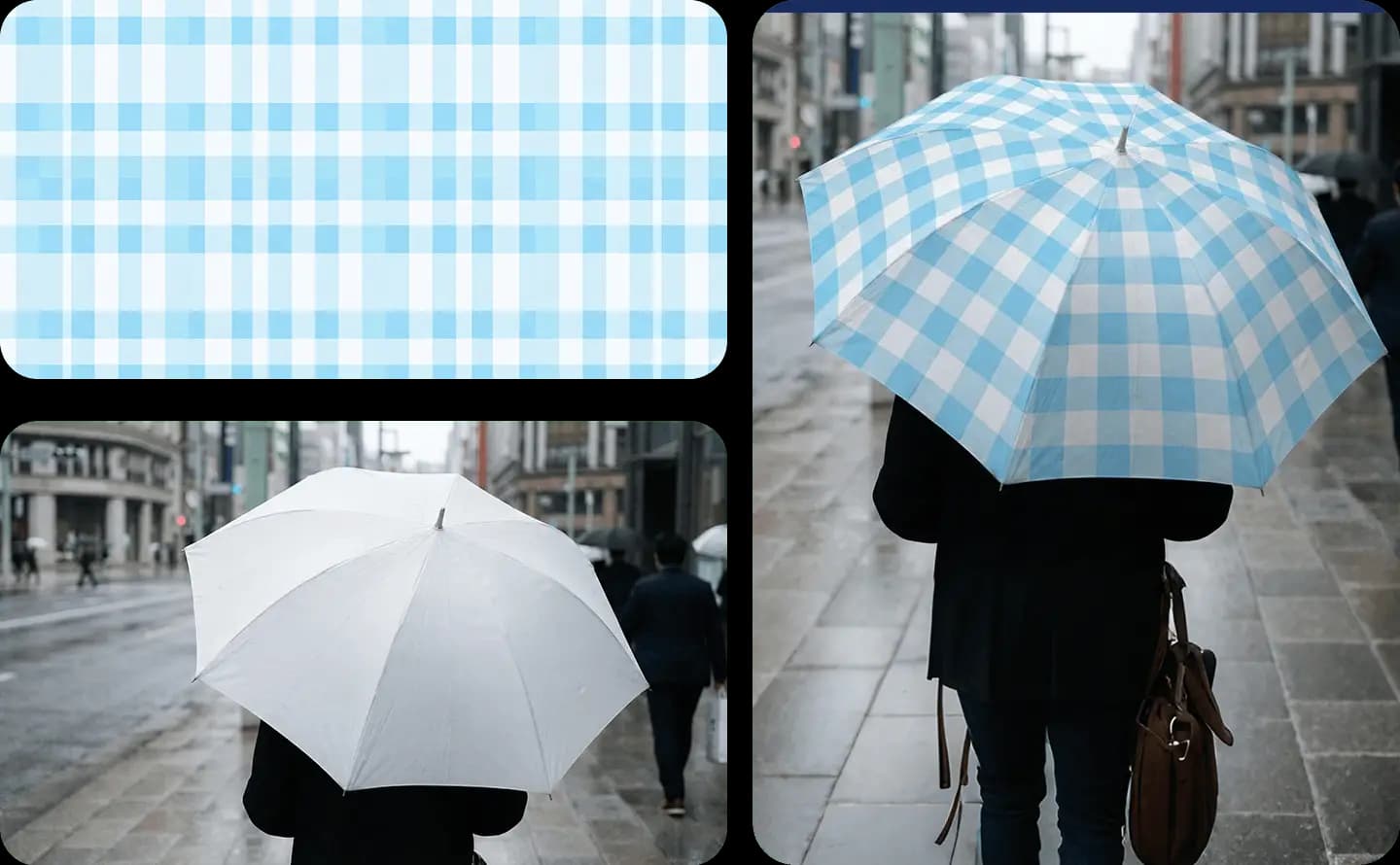 Start with a PNG or JPG umbrella image in any angle or layout.