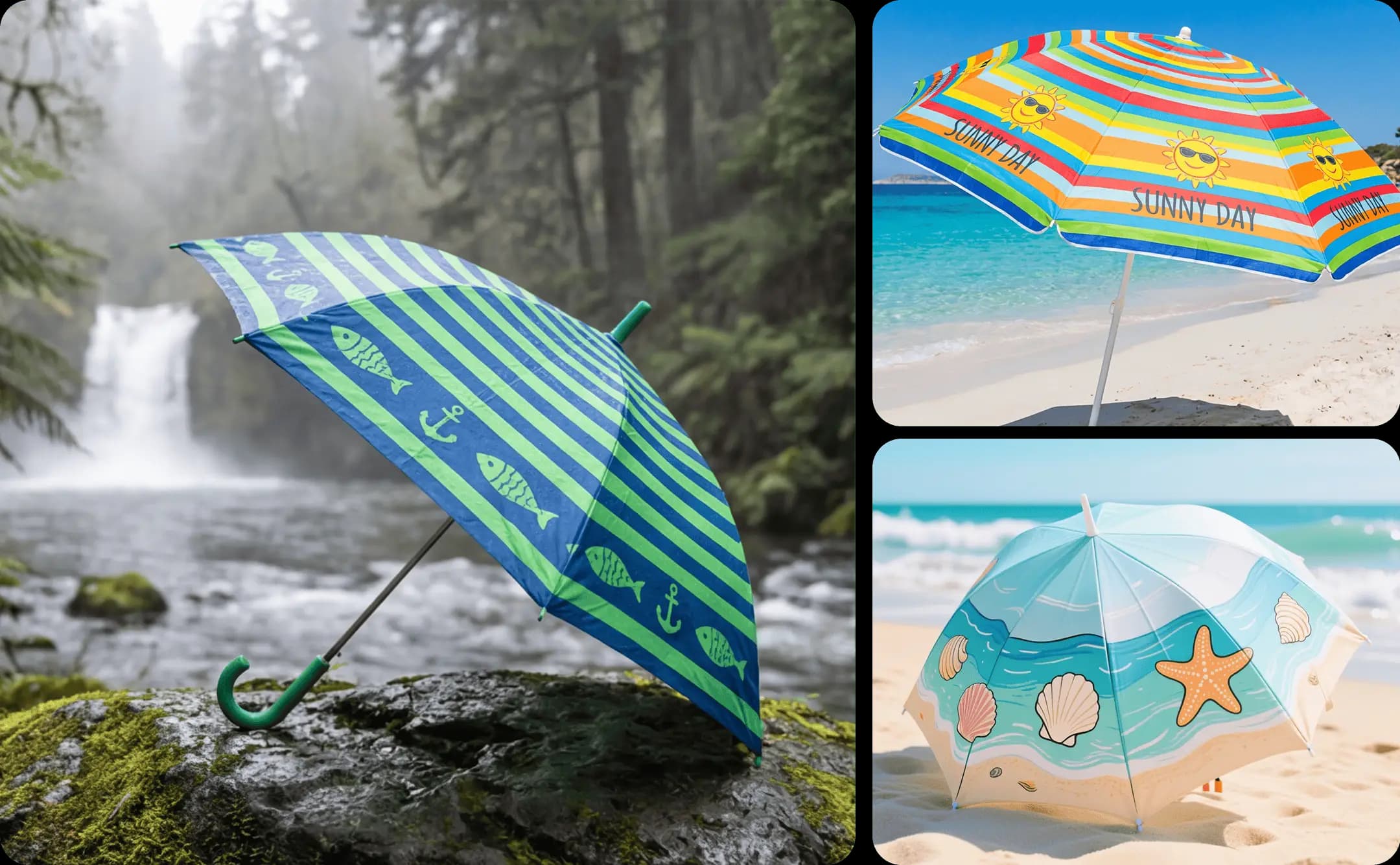 Mockuplabs.ai's Umbrella Mockup Generator helps designers and POD sellers turn any umbrella artwork into realistic product visuals. Whether it's an outdoor umbrella, foldable umbrella, or branded merchandise, you can generate studio-quality mockups in minutes.