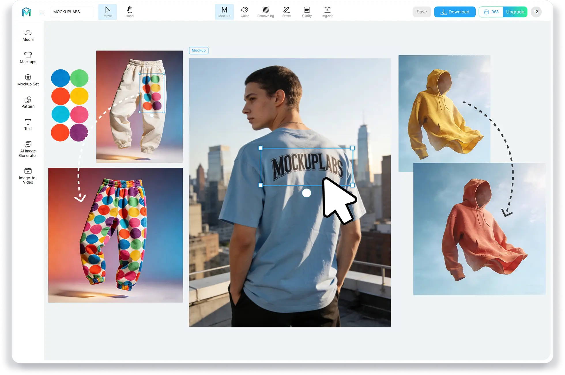 Tweak the position, size and placement if needed. Once satisfied, click 'Download' to save your high-quality mockup photos.